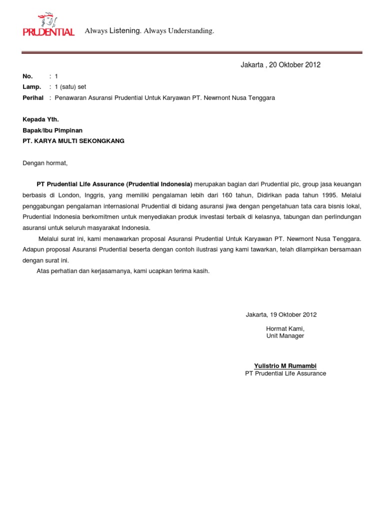 Contoh Surat Penawaran Asuransi Kerugian via contohsurat2018.com